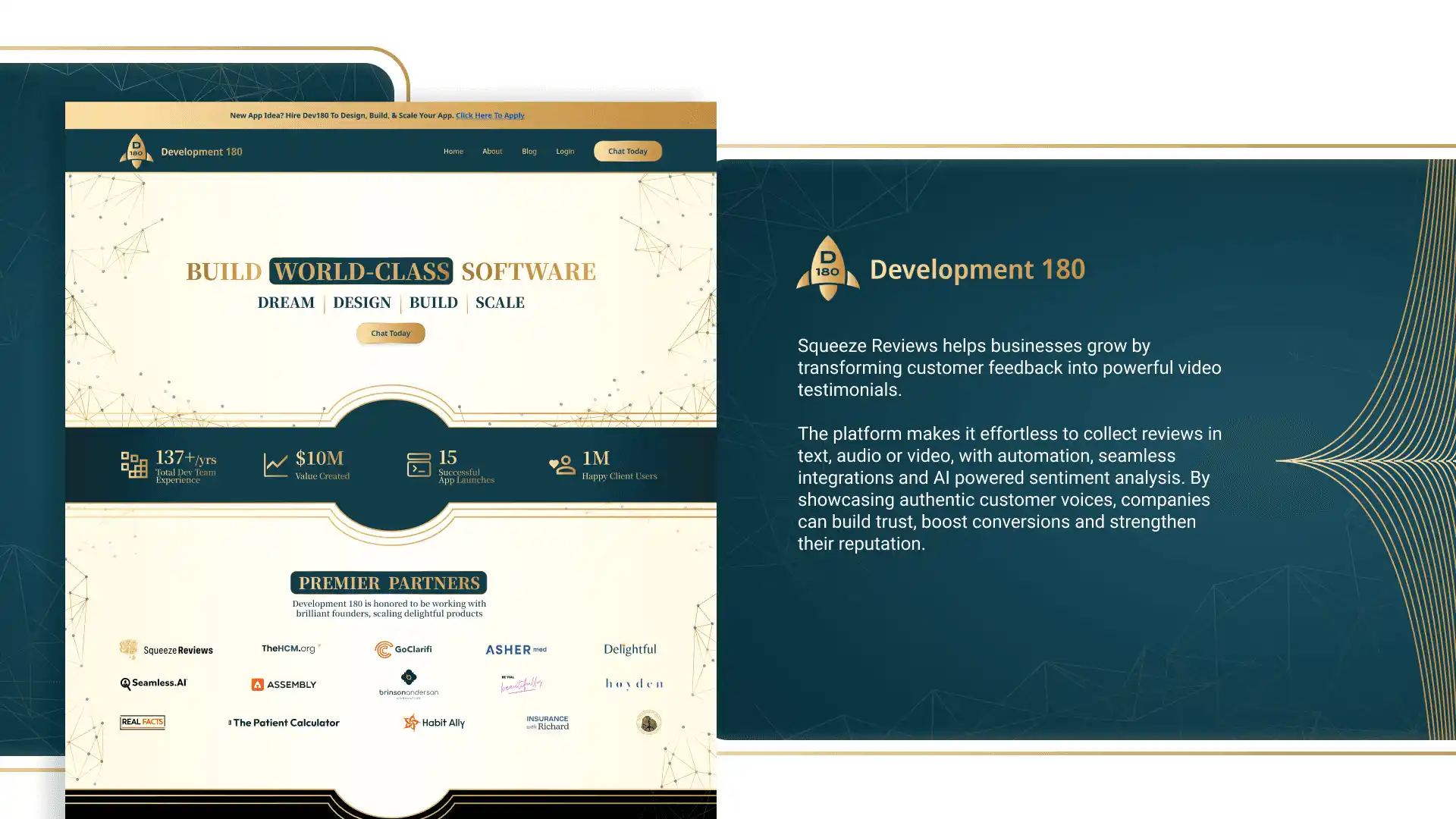 Development 180 is a full-service software development partner specializing in helping founders and companies bring digital products to life. With expertise across design, engineering, and product strategy, the team supports startups and enterprises as they conceptualize, validate, build, and scale applications. Their mission is to create world-class software through a structured, collaborative, and growth-oriented process.